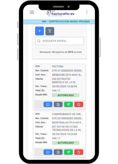 Sustituye el formato tradicional de facturas en papel, los DTEs son enviados al correo electrónico del consumidor y tienen validez legal del Ministerio de Hacienda.